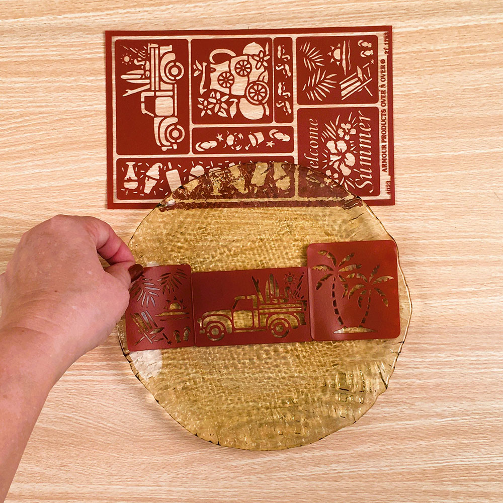 - Arrange your desired assortment of summer stencils across the middle of the plate.
